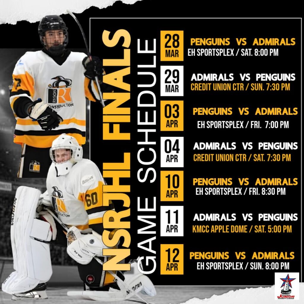LANTZ: The schedule for the championship final in the N.S. Jr C Hockey League featuring the Admirals and your hometown East Hants Ryson Construction Penguins has been announced.