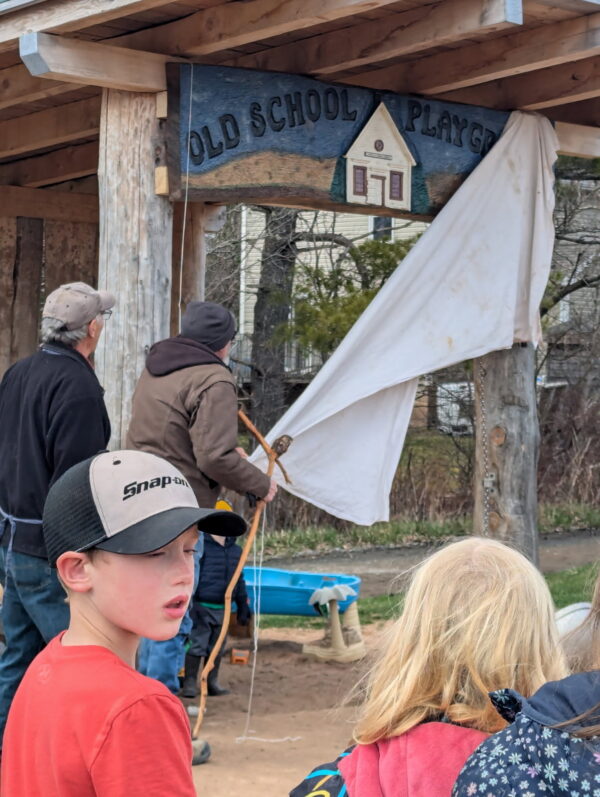 The sign is unveiled by Mike Beaver to reveal the new hand carved playground sign. (Submitted photo)