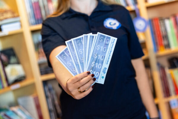 A Nova Scotia Loyal brand ambassador holds $10 vouchers that can be used to purchase Nova Scotia authored and published books in 11 independent bookstores across the province. (Province of Nova Scotia)