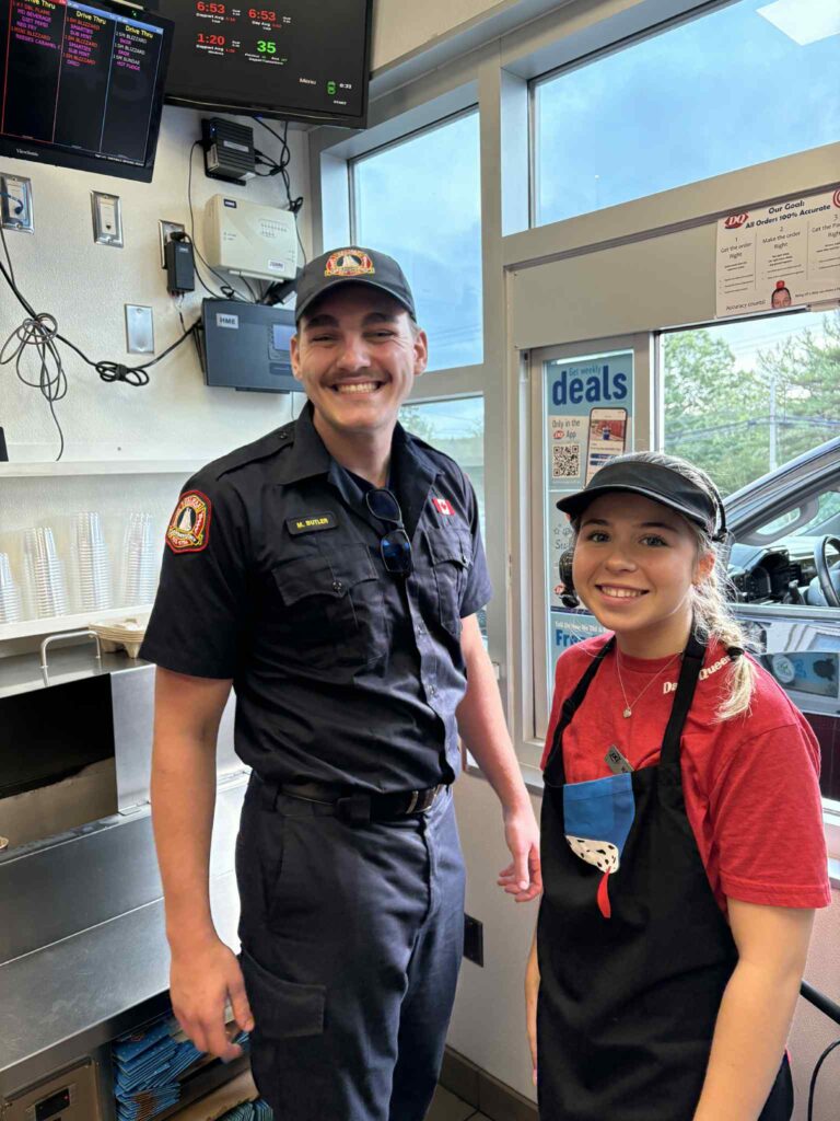 Besides Marchand, The Laker News’ own Pat Healey was put to work on Miracle Treat Day serving customers and volunteer firefighters at Station 45 Fall River stopped by during the supper hour to serve as well.