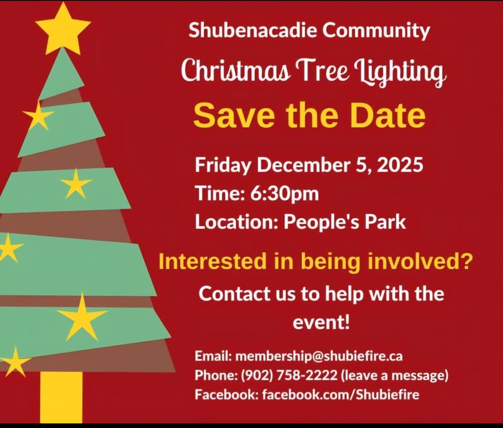 At the People’s Park in Shubenacadie (at the corner of Hwy 2/ Mill Village Road/Hwy 215), the community Christmas tree will be lit on Dec. 5